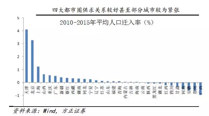 而这张图是2010年-2015年,中国的人口迁入率。这张图比较有指导意义,哪些省份的大城市房子比较好炒也一目了然。人口净流出的城市,房子千万不能买。很可惜没能找到城市级别的统计,只有省份的统计。