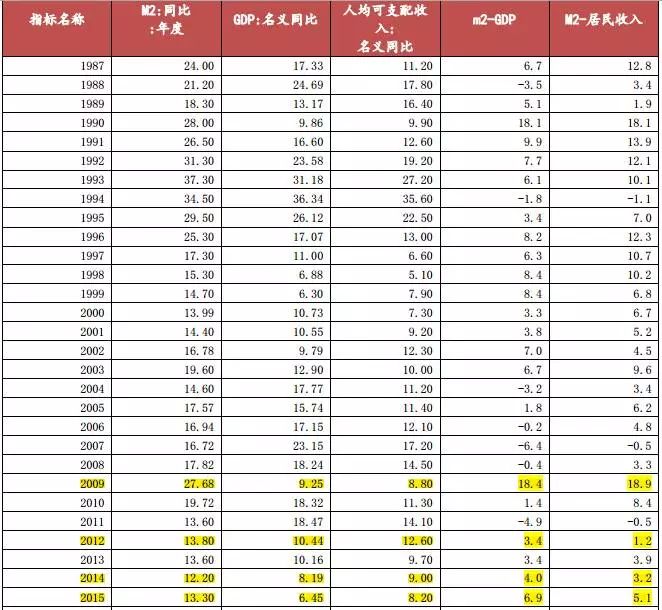 这张表列举了从1997年到2015,广义货币M2的增速,名义GDP,人均可支配收入的年度环比增速。M2就是现金加上放在银行里的存款。看我黄色标注的年份,但凡M2显著大于名义GDP和人均可支配收入的年份,都是房价暴涨的年份。2009年全球金融危机,著名的4万亿!当时房子贷款利率还可以打折,我就是这一年开始炒房的。后面的2014年-2015年,大家更有感觉了。注意这是环比增速,别小看这每年增速多几个点,这么多年累积下来超发的可是不少啊。