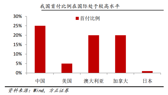 这是首付的比例,这意味着什么,中国房价跌到25%以上,才会导致银行系统出风险。因为如果跌幅超过25%,就有不少人,把房子丢给银行去收拾残局。银行大多数是国家的,那大家就心理有底了,大概目前房价跌25%就是政府出手干预救市的底线。