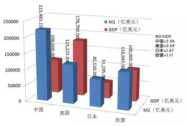 货币供应量与GDP的比例每个国家情况不一样,有一些国家国民喜欢存钱,有一些是月光族。我们可以做一些横向的对比。